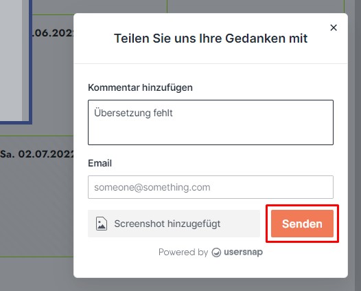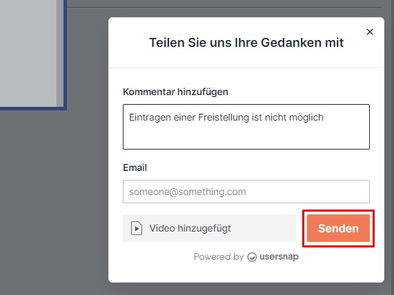 Um Ihr Feedback abzuschicken, klicken Sie auf "Senden":