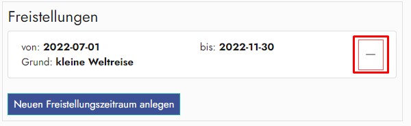 Das Löschen der Freistellung erfolgt über den Button beim Freistellungs-Eintrag: