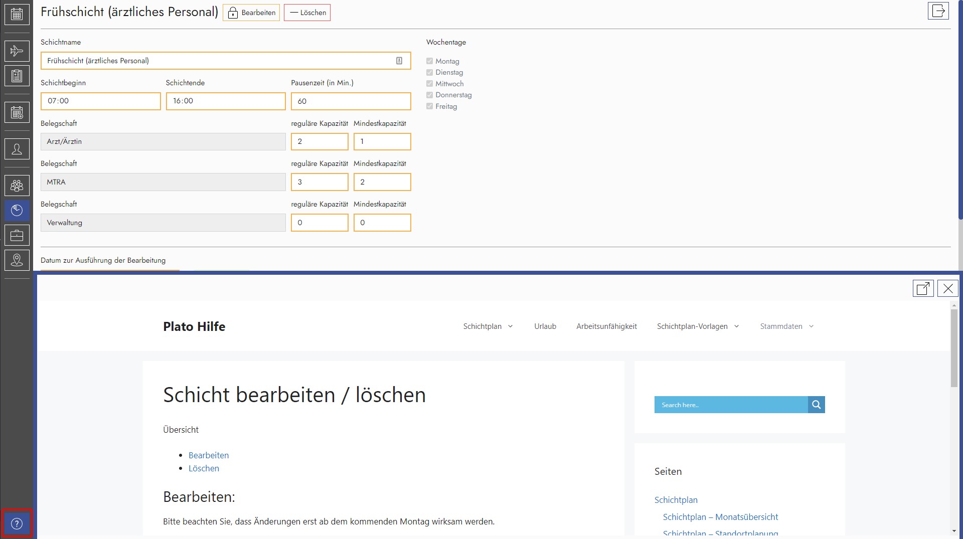 Ist der Planende beispielsweise auf der Einzelansicht einer Schicht, erhält er Informationen, wie eine Schicht bearbeiten kann bzw. wie diese gelöscht werden kann.