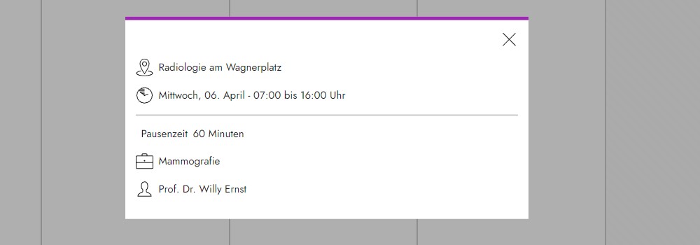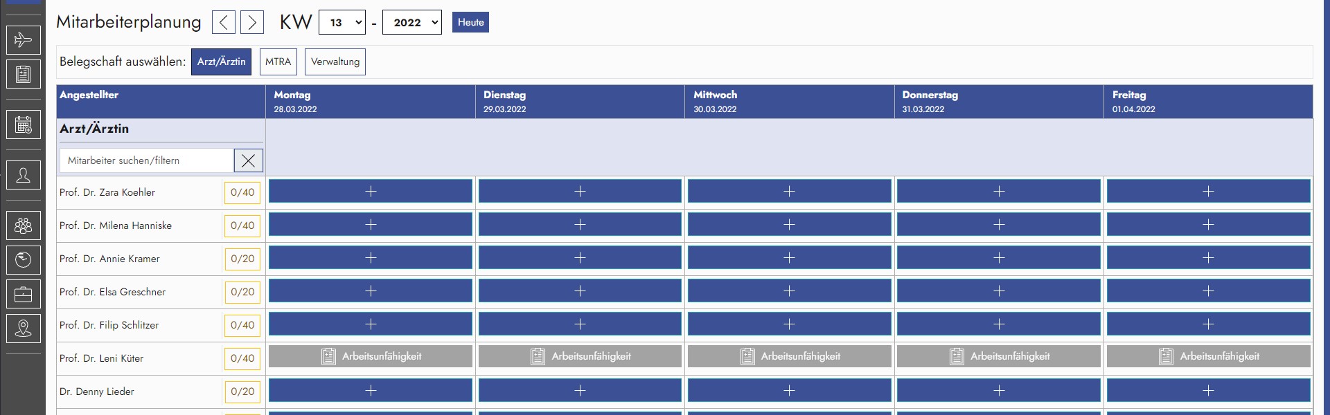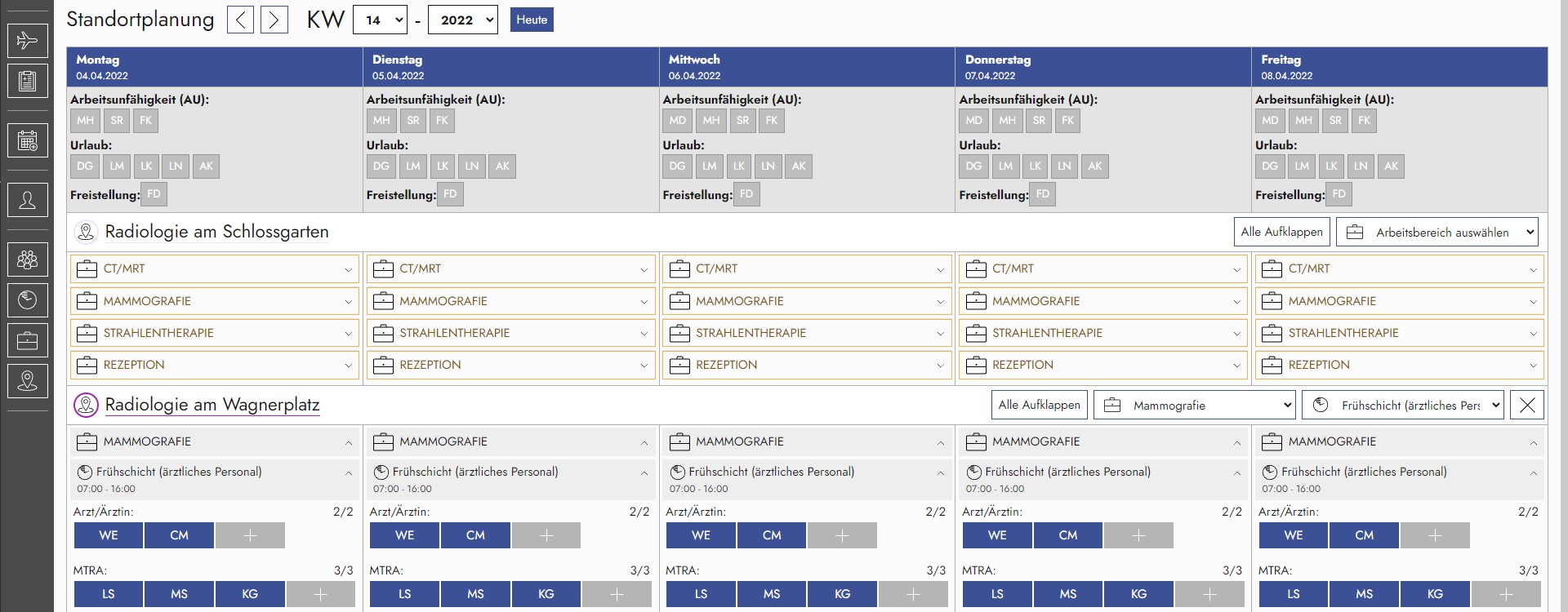 Beispiel: Planung einer Radiologischen Praxis am Standort Wagnerplatz von 01.04.2022 bis 31.06.2022 (Quartal 2 2022)