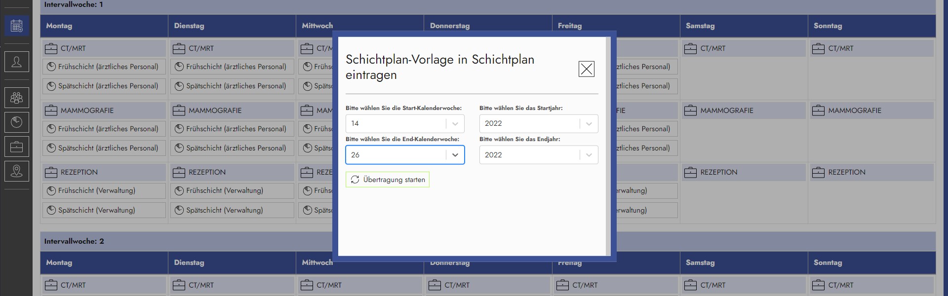 Übertragung einer Schichtplan-Vorlage in den Schichtplan