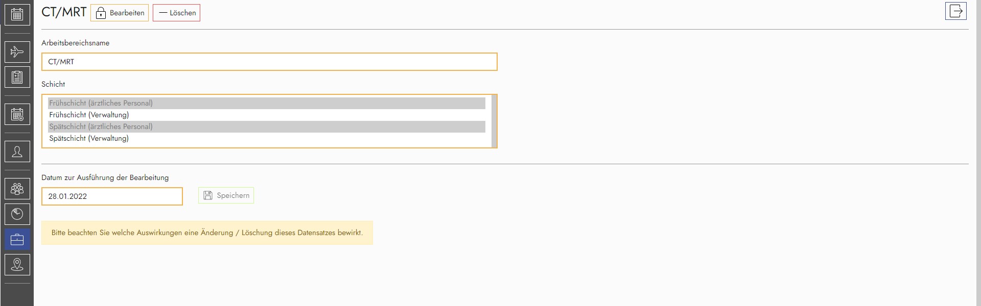 Änderungen bzw. das Löschen von Stammdaten können Auswirkungen auf den Schichtplan und die Schichtplan-Vorlagen haben. Wird beispielsweise ein Arbeitsbereich gelöscht, dann werden alle zukünftigen bereits vorgenommenen Schichtplan-Einträge dieses Arbeitsbereichs (und den dazugehörigen Schichten und an allen Standorten, an denen diese Arbeitsbereiche vorhanden waren) gelöscht. Des Weiteren können Anpassungen von Stammdaten auch Konflikte verursachen, wenn sich beispielsweise die Dauer der Schichten verändern oder wenn sich die zugewiesenen regulären oder Mindestkapazitäten der Belegschaften einer Schicht ändern.