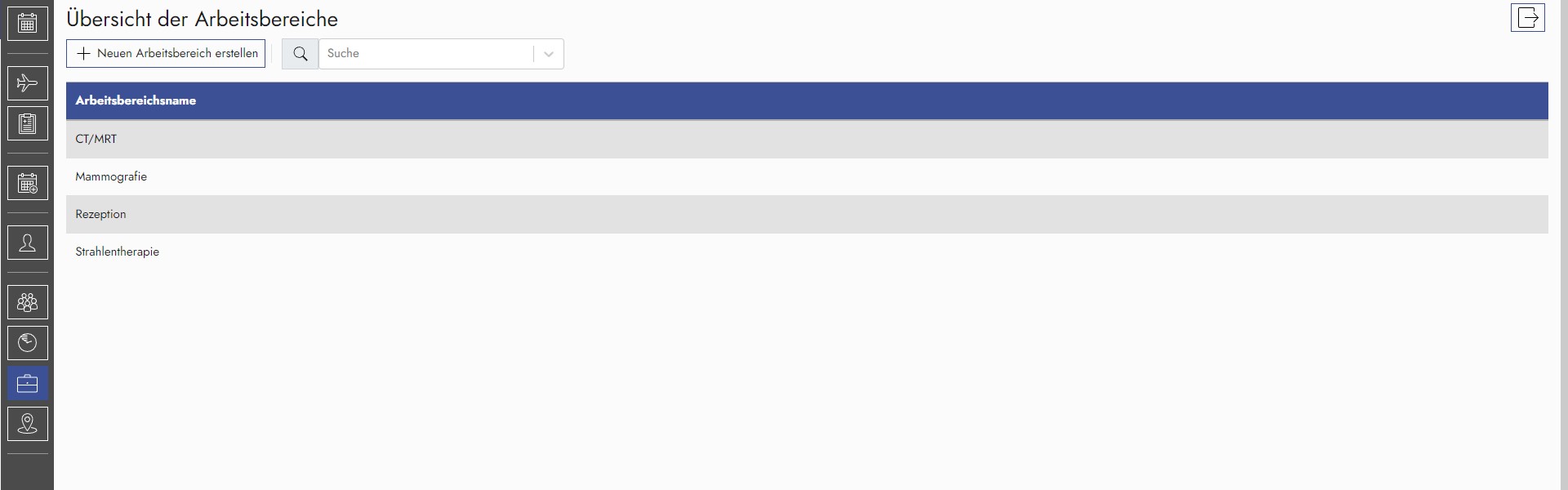 Zugriff auf die Stammdaten Belegschaft, Schichten, Arbeitsbereiche, Standorte und Mitarbeiter bekommen Sie über das Hauptmenü. Über jeden Menüpunkt gelangen Sie zunächst auf eine Übersichtsseite, die alle verfügbaren Einträge zeigt und wo Sie auch einen neuen Eintrag hinzufügen können. Per Klick auf einen Einzeleintrag erhalten Sie weitere Informationen zu diesem Eintrag. Hier können Sie die Informationen ansehen, die Daten bearbeiten und den Eintrag löschen.